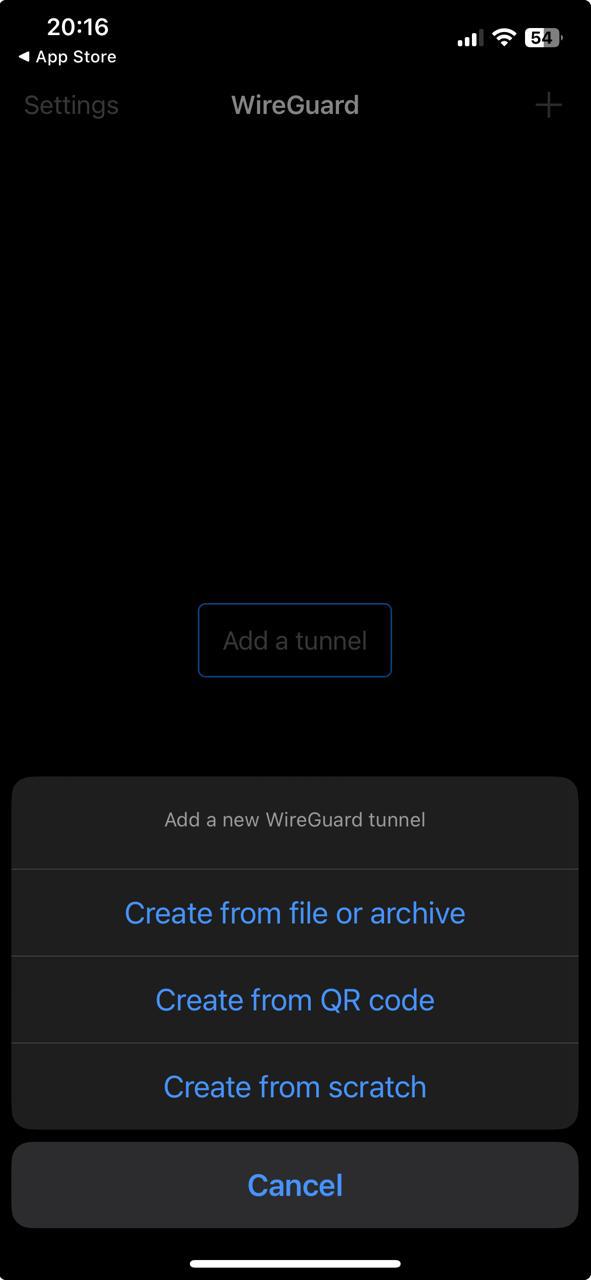 Step 04 - Open the WireGuard and touch in 'Add a tunnel'