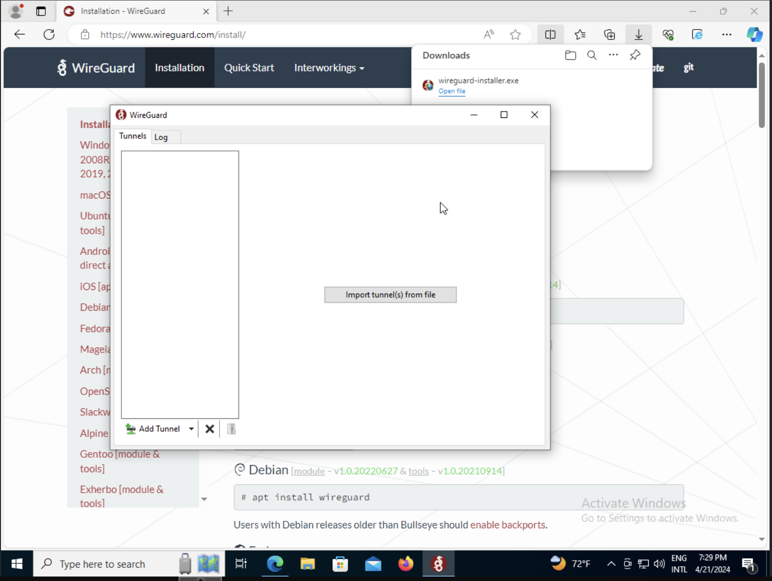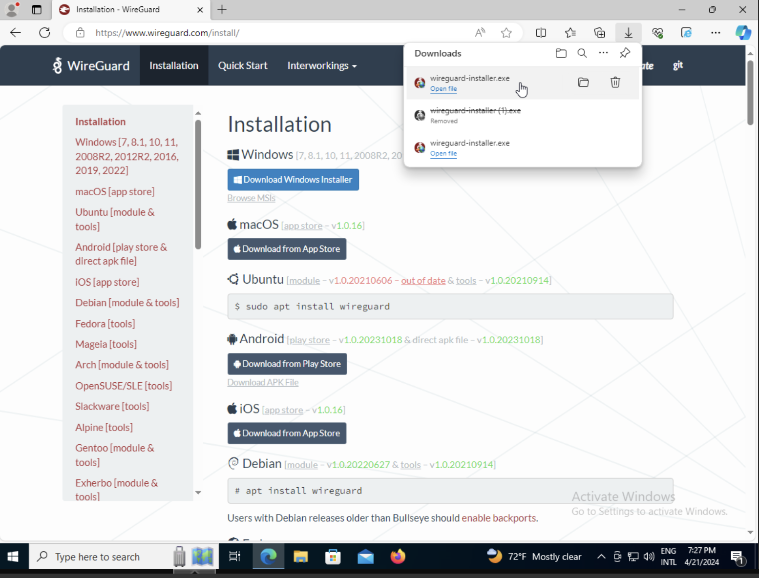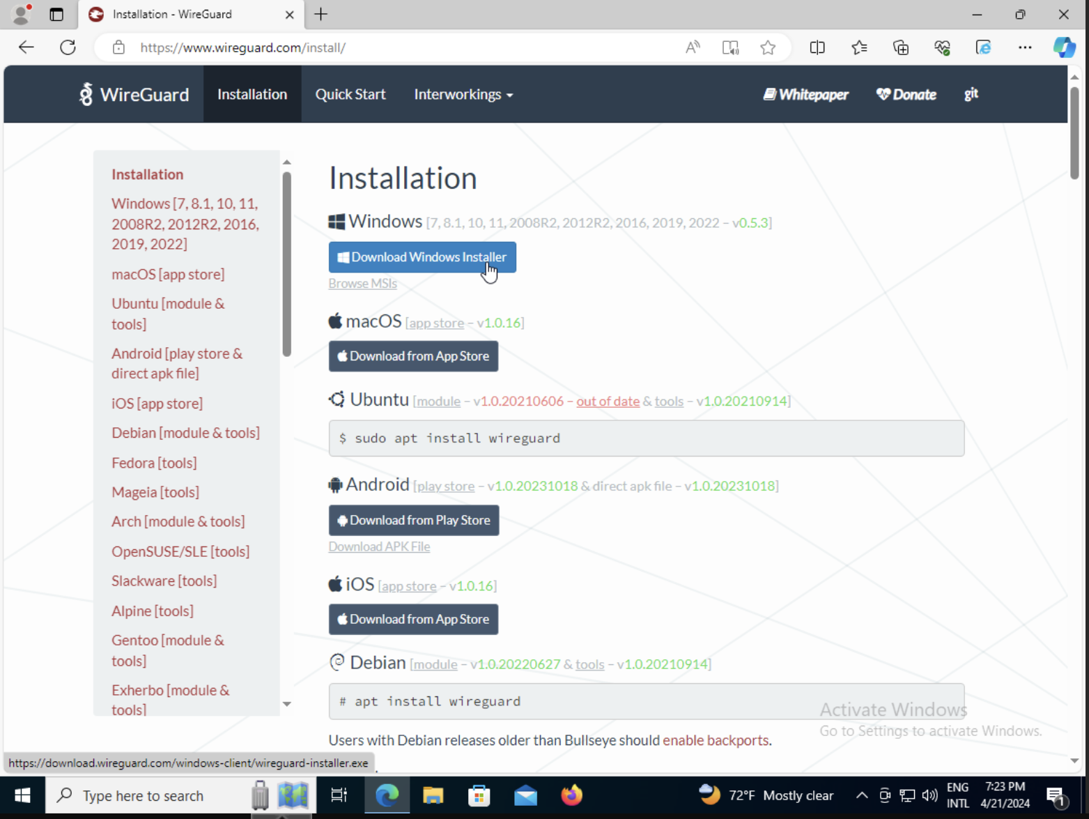 Step 03 - Click in WireGuard windows installer