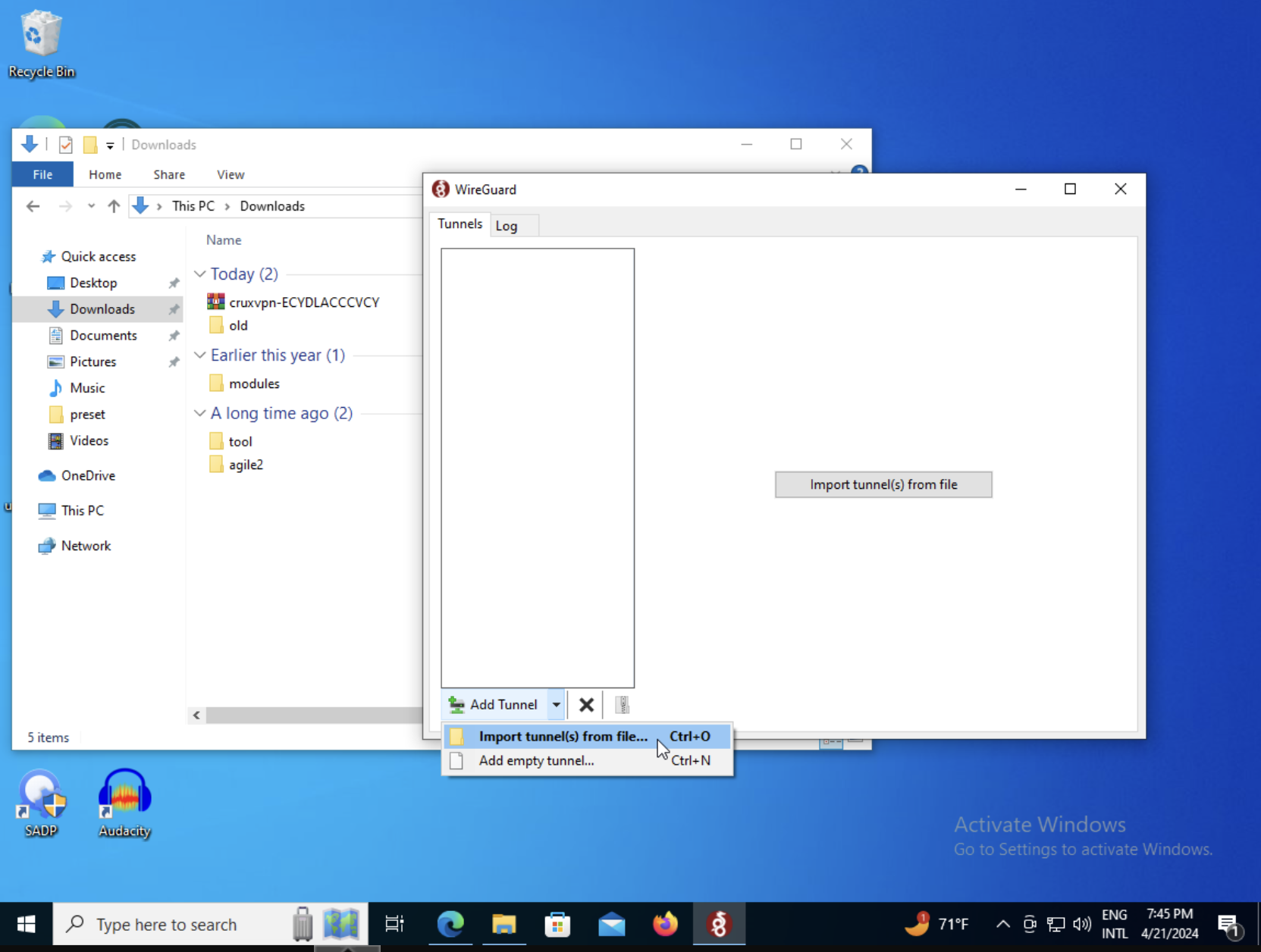 You may wish to install WireGuard App from the AppStore: Windows