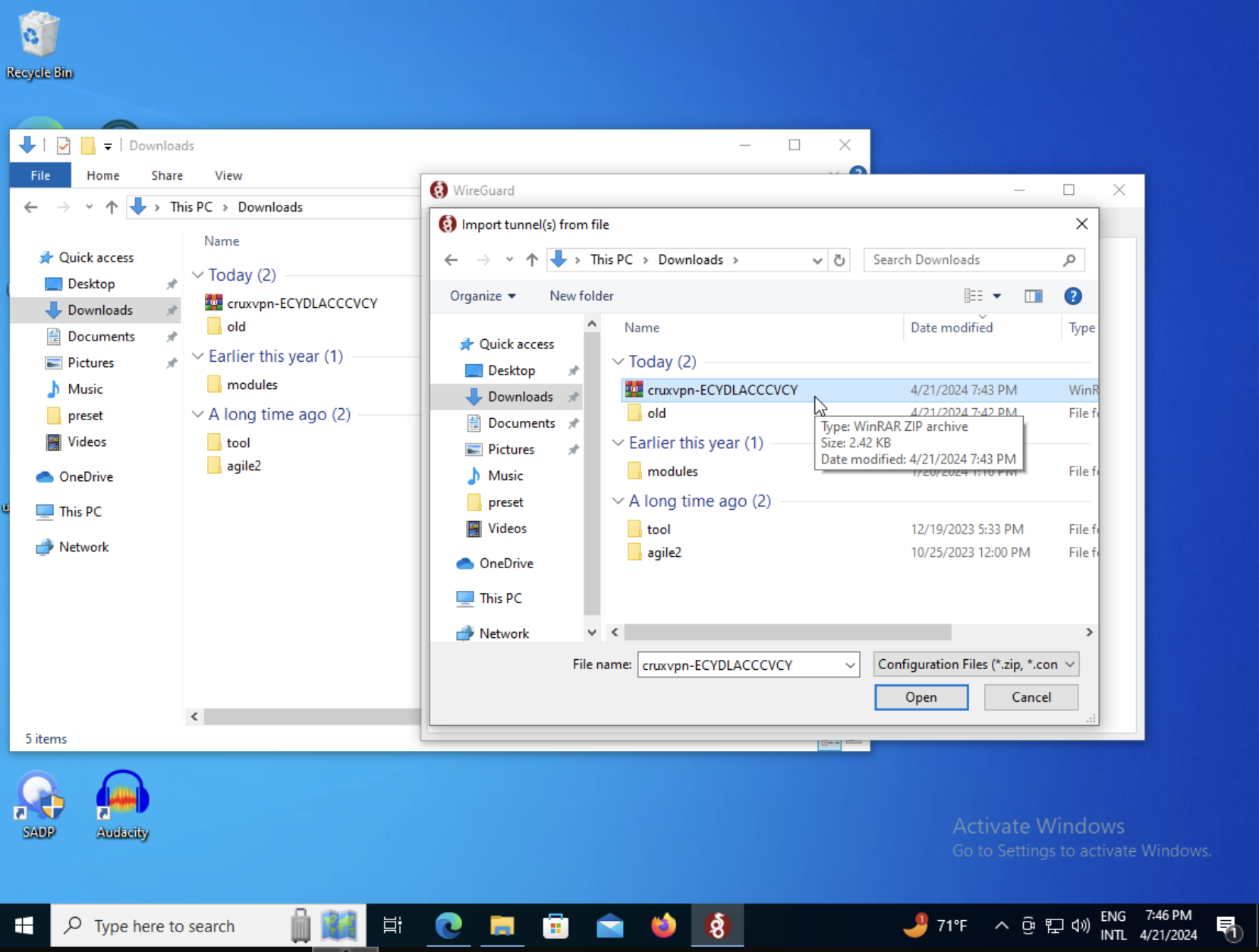 Step 06 - Choose your generated archive from CruxVPN site