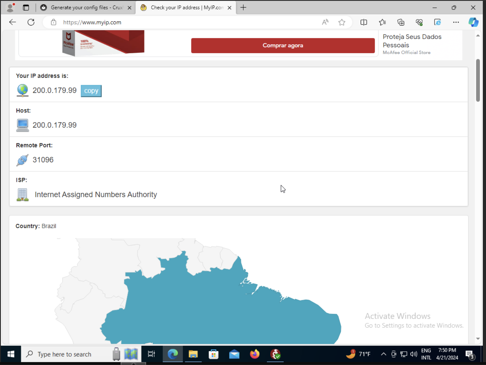 Step 09 - open a browser and check the VPN IP Addreess in www.myip.com